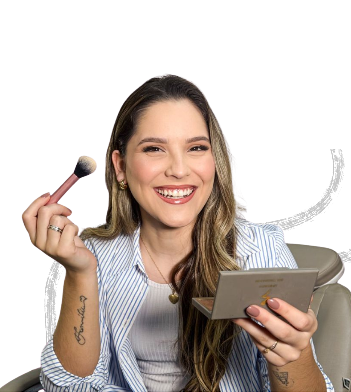 Ao longo dos anos, desenvolvi uma metodologia clara, prática e descomplicada, focada em ensinar mulheres a se maquiarem com segurança, técnica e leveza — mesmo que nunca tenham pegado em um pincel antes.